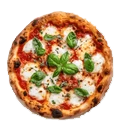 Salsa de tomate, queso muzzarella, tomates Cherrys, albaca y orégano